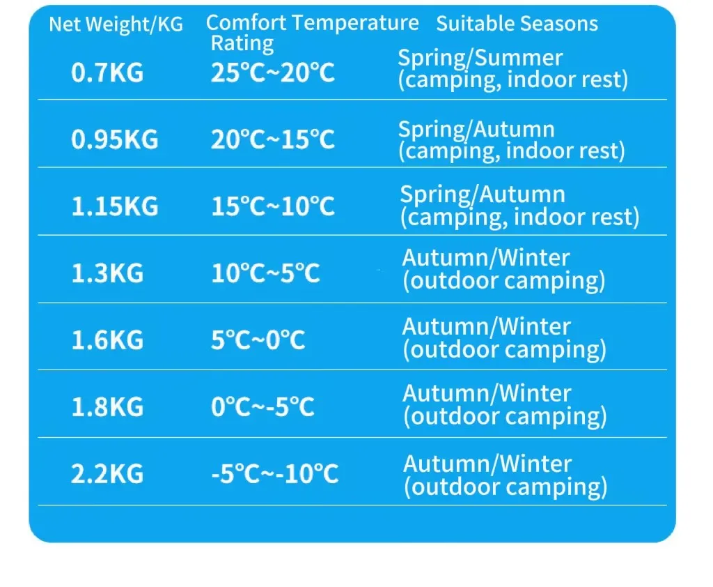 Sleeping Bag Temperature Scale Category: Winter Sleeping Bag, Spring and Autumn Sleeping Bag
